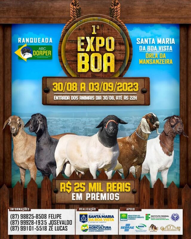 A Prefeitura de Santa Maria da Boa Vista iniciará, na próxima quarta-feira (30), a 1ª Feira de Caprinos, Ovinos e Agricultura Familiar do município (ExpoBoa). A programação acontecerá na Orla da Mansanzeira e vai até o dia 03 de setembro, contando com ampla programação e R$ 25 mil em premiações para os melhores animais de […]