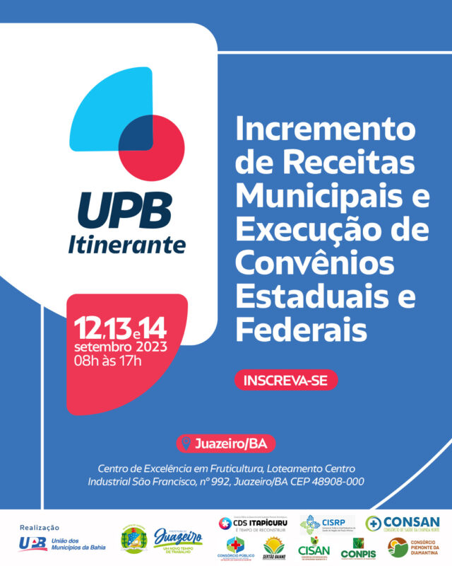O evento realizado pela Prefeitura de Juazeiro em parceria com a União dos Municípios da Bahia (UPB) vai acontecer nos dias 12, 13 e 14 de setembro, no Auditório do Serviço Nacional de Aprendizagem Rural (SENAR), das 8h às 17h, tendo como tema “Incremento de Receitas Municipais e Execução de Convênios Estaduais e Federais”. A […]