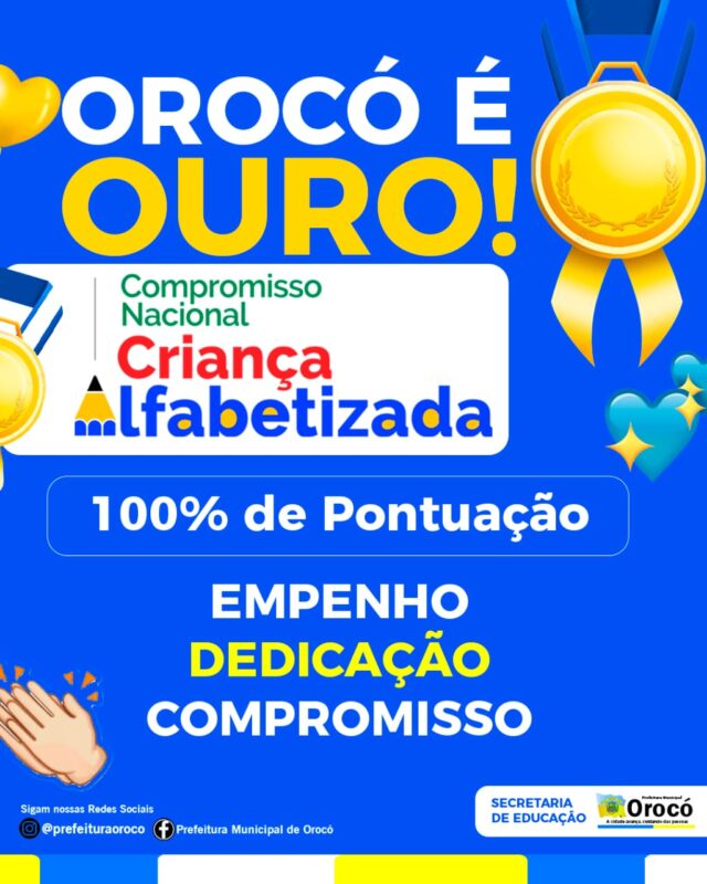 É Ouro! Educação de Orocó é contemplada com Selo Nacional: Compromisso com a Alfabetização!