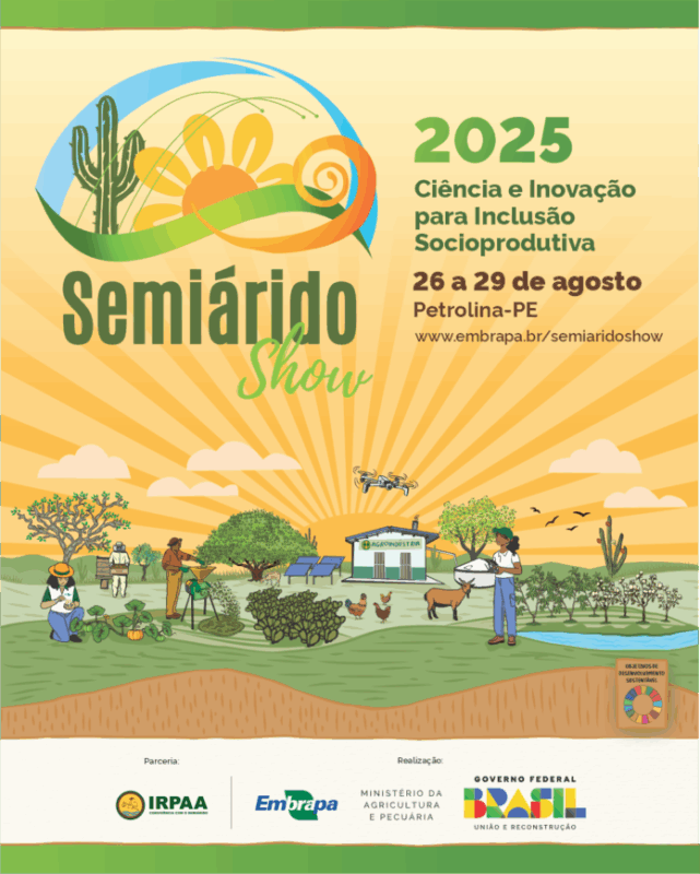 A 11ª edição do Semiárido Show já tem data marcada. Entre os dias 26 e 29 de agosto de 2025, Petrolina (PE) sediará o maior evento do Nordeste voltado à agricultura familiar dependente de chuva e às inovações tecnológicas para a produção no Semiárido. Realizado pela Embrapa, em parceria com o Instituto Regional da Pequena […]