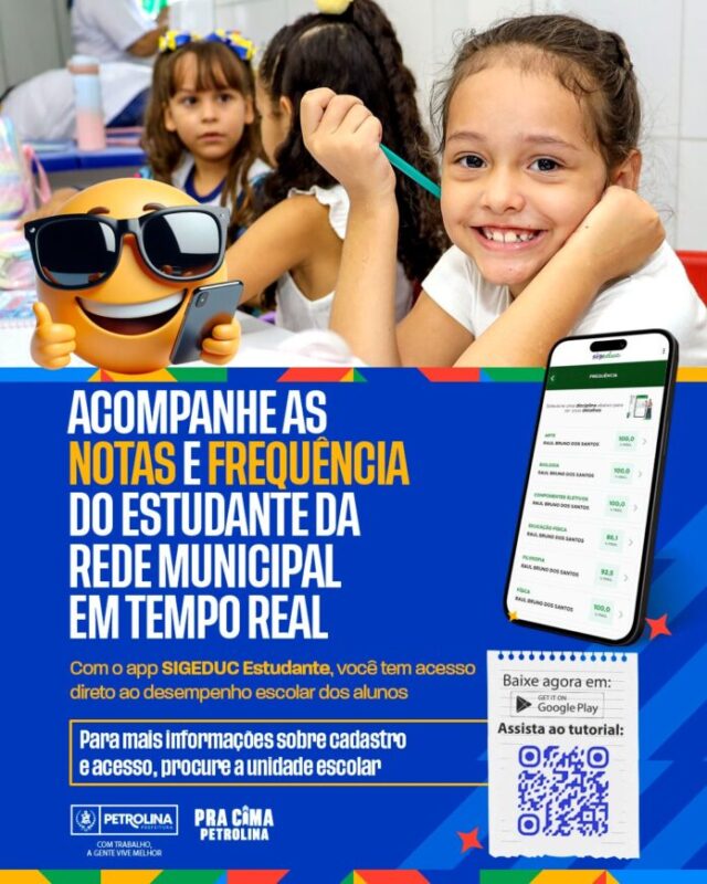 A Prefeitura de Petrolina, por meio da Secretaria de Educação, Cultura e Esporte, orienta pais e responsáveis a utilizarem o aplicativo SIGEDUC Estudante. A ferramenta digital permite acompanhar, de forma prática e em tempo real, a frequência e o desempenho dos estudantes da rede municipal. A plataforma já está em uso na rede e tem […]