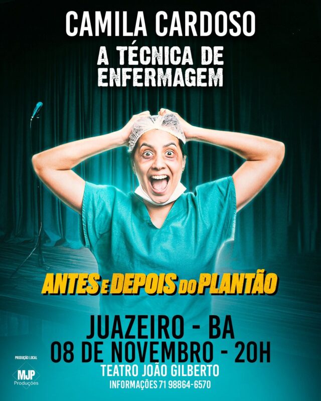A técnica de enfermagem que trocou o jaleco pelo microfone, Camila Cardoso (@atecdeenfermagem), apresenta o seu primeiro show solo de comédia stand up no Vale do São Francisco. Em ‘Antes e depois do plantão’, ela comenta e faz rir com as mais hilariantes e inacreditáveis histórias vividas por ela nos bastidores do mundo da saúde. […]