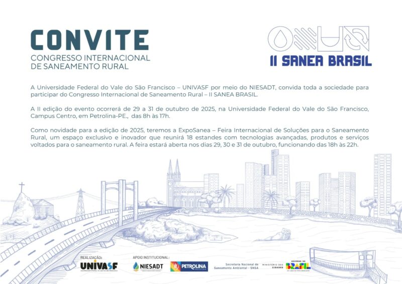 O evento será realizado pela Universidade Federal do Vale do São Francisco (UNIVASF), por meio do NIESADT (Núcleo de Inovação em Estudos de Saneamento Ambiental e Desenvolvimento Territorial), nos dias 29, 30 e 31 de outubro de 2025, no Campus Centro da UNIVASF, em Petrolina-PE. Este evento se consolida como o maior congresso internacional dedicado […]