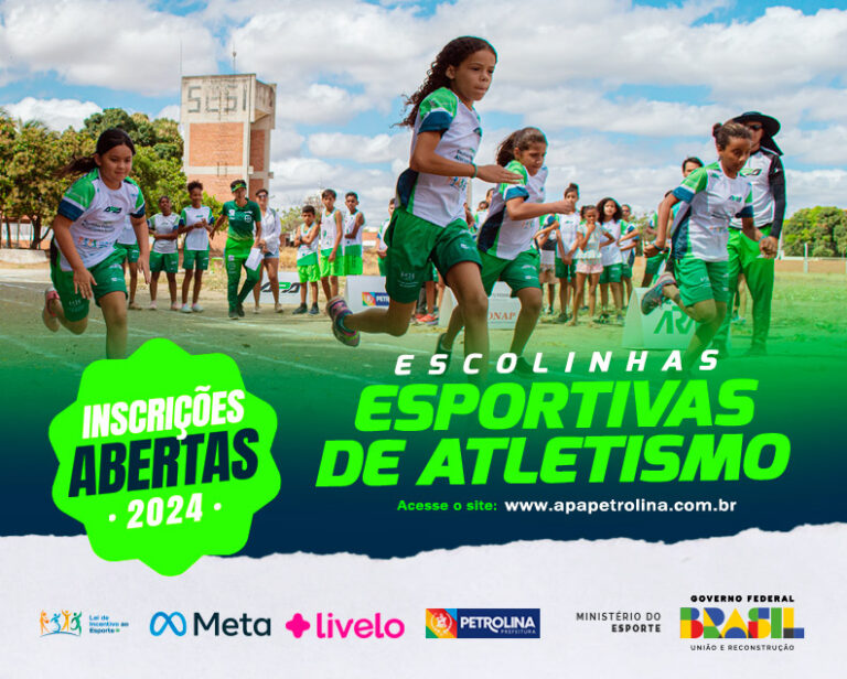 A Associação Petrolinense de Atletismo (APA) está com inscrições abertas para o projeto Escolinhas de Atletismo Inclusivo. Crianças e adolescentes, com ou sem deficiência, de 8 a 17 anos, podem se inscrever gratuitamente até o dia 3 de maio por meio do preenchimento de formulário online disponível no site apapetrolina.com.br.