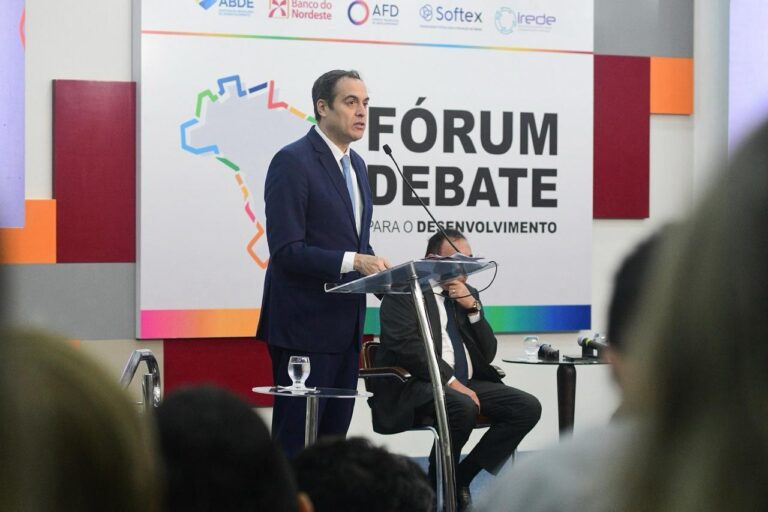 O presidente do Banco do Nordeste (BNB), Paulo Câmara, destacou a liderança da região na produção de energia sustentável e a importância desse potencial impulsionar um crescimento econômico com justiça social, durante o IV Fórum Debate Desenvolvimento, realizado nesta quinta-feira, 10, em Fortaleza. O evento, promovido em parceria com a Associação Brasileira de Desenvolvimento (ABDE), reuniu representantes do Sistema Nacional de Fomento e dos governos federal e estadual para discutir “O financiamento à transição justa e o potencial do Nordeste brasileiro”.