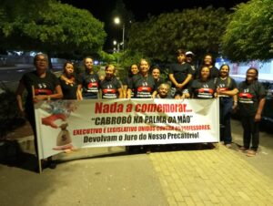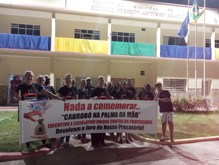“Nada a comemorar…Cabrobó na palma da mão” Executivo e Legislativo unidos contra os professores. Devolvam o Juro do nosso Precatório”, alertaram pelas ruas de Cabrobó com faixas e cartazes.