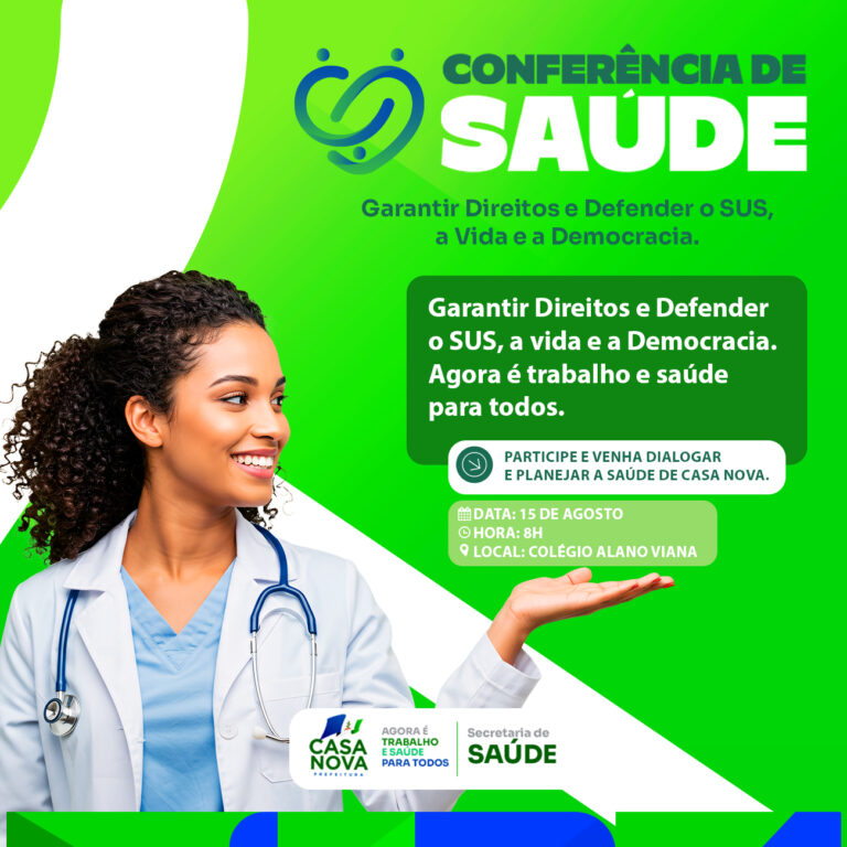 A população de Casa Nova estará reunida, nesta sexta-feira (15), para discutir os desafios e propor soluções para a rede de assistência em saúde do município. A 6ª Conferência de Saúde, promovida pela Prefeitura Municipal, através da Secretaria de Saúde, acontecerá no Colégio Alano Vieira, às 8h.