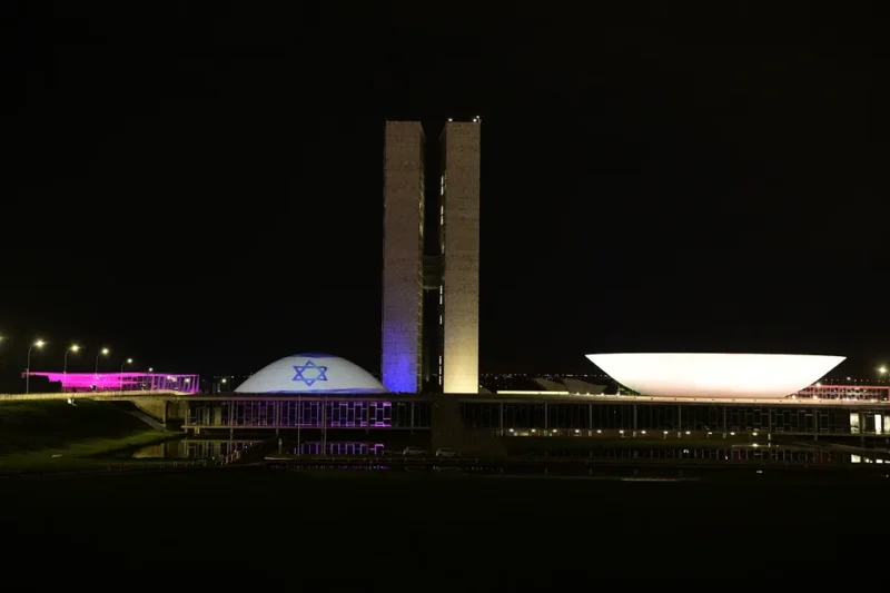 Guerra no Oriente Médio: bandeira de Israel é projetada na cúpula do Senado Federal, em Brasília