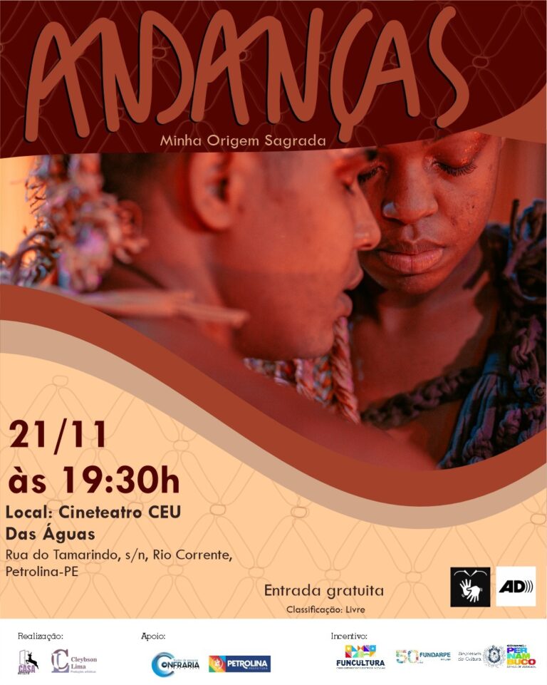 No Dia da Consciência Negra, que será feriado nacional pela primeira vez, o Coletivo Casa de Artista leva aos palcos o espetáculo “Andanças: Minha Origem Sagrada”. As apresentações são gratuitas e serão realizadas no cine-teatro do CEU das Águas, na quarta (20) e quinta (21), sempre às 19h30.