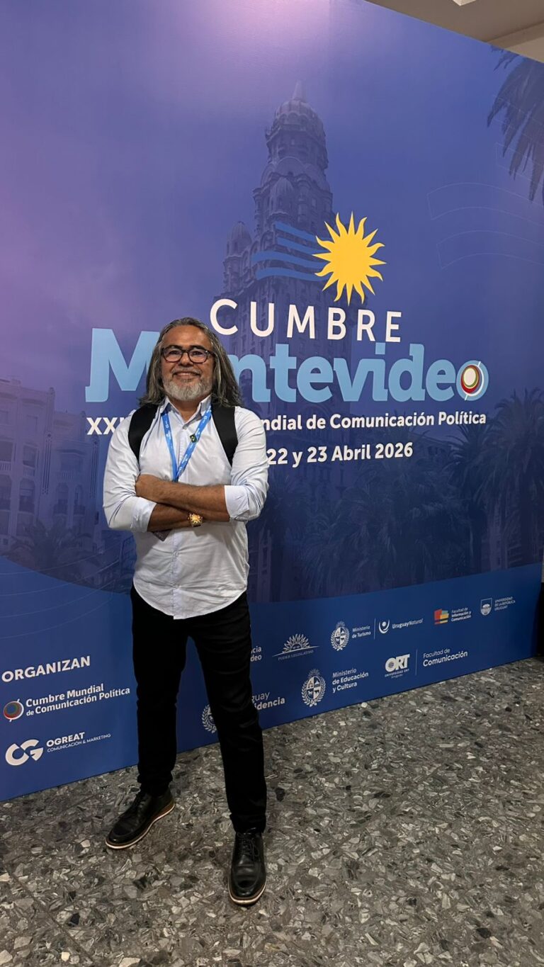 Ele está em Montevidéu participando da Cumbre Mundial de Comunicación Política, um dos maiores encontros do mundo voltados à estratégia eleitoral e comunicação de mandatos. O evento reúne mais de dois mil profissionais de vários países, entre consultores, marqueteiros, pesquisadores e lideranças políticas — gente que atua desde campanhas municipais até disputas presidenciais.
