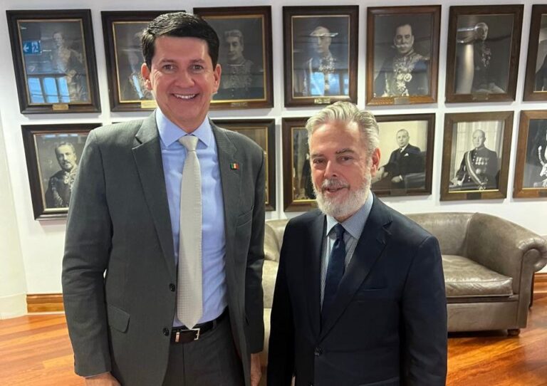 No terceiro dia da missão em Londres, o prefeito Simão Durando e a comitiva de líderes do partido União Brasil participaram de uma reunião com o embaixador do Brasil no Reino Unido, Antônio Patriota. O encontro ocorreu na sede da Embaixada Brasileira, na capital inglesa, durante a manhã desta quarta (20). Os líderes conversaram com Patriota sobre a relação comercial e as oportunidades potenciais entre o Brasil e os países que formam o Reino Unido.