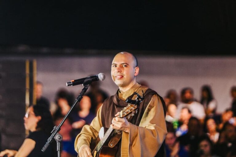 A partir das 22h, Frei Gilson conduz um momento especial de música e oração, preparando os participantes para um dos pontos centrais da programação.