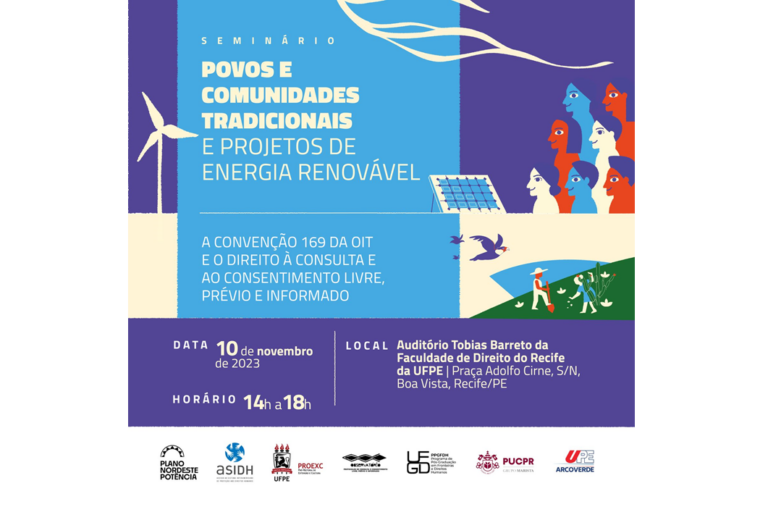 O Plano Nordeste Potência e parceiros convidam para o I Seminário Nordeste Potência “Povos e comunidades tradicionais e projetos de energia renovável – Convenção 169 da OIT e o direito à consulta e ao consentimento livre, prévio e informado”.