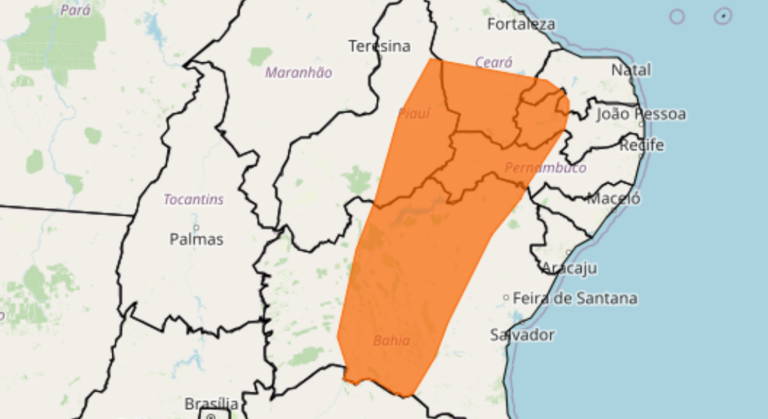O alerta de onda de calor do Inmet também vale para parte de outros cinco estados nordestinos: Bahia, Ceará, Paraíba, Piauí e Rio Grande do Norte.