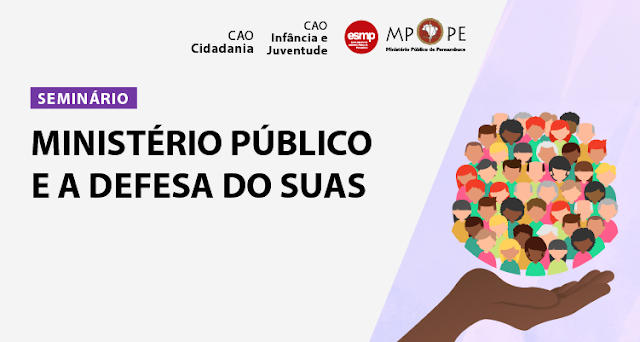 O Ministério Público de Pernambuco (MPPE), por meio da sua Escola Superior e dos Centros de Apoio Operacional (CAO) Cidadania e Infância e Juventude, realizará, no dia 7 de maio, das 8h às 11h, o seminário “O Ministério Público e a defesa do SUAS”.