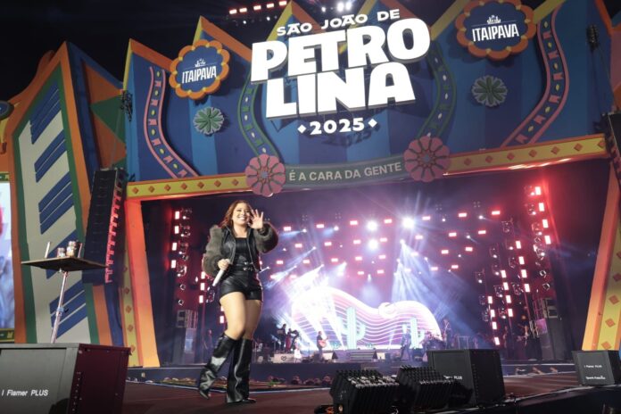 A cantora cearense, Mari Fernandez, iniciou sua apresentação no Pátio de Eventos Ana das Carrancas. Com sucessos consagrados, a artista se apresenta pelo quarto ano consecutivo no palco do Melhor São João do Brasil.