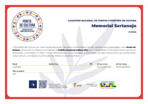 É com imensa satisfação que recebo o certificado como ponto de cultural Representando a trajetória e o esforço incansável do Museu Memorial Sertanejo, um verdadeiro ícone cultural da região do Araripe.