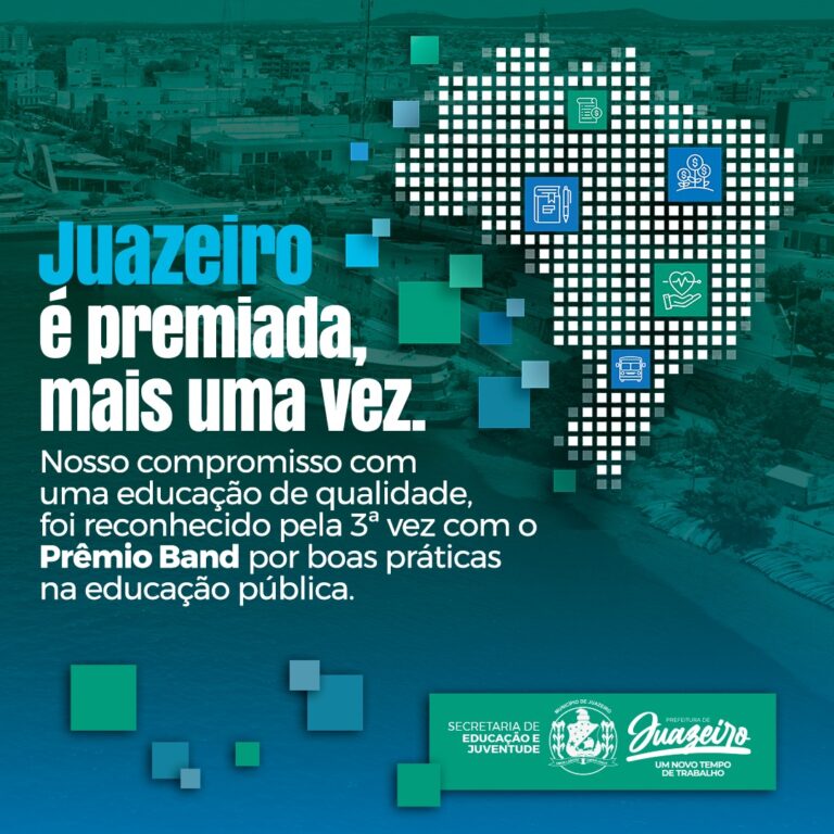 Em 2023, pelo terceiro ano consecutivo, a educação de Juazeiro vai receber o prêmio ‘Band Cidades Excelentes’. A premiação, que é iniciativa do Grupo Bandeirantes de Comunicação, em parceria com o Instituto Áquila, foi criada em 2021 e visa incentivar a melhoria da realidade dos municípios brasileiros por meio do reconhecimento das boas práticas na gestão pública.