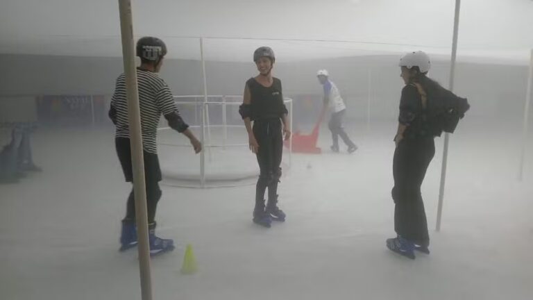 A pista conta com tecnologia italiana e possui dimensões de 16 metros de largura por 30 metros de comprimento, além de espaço adequado para a colocação dos patins.