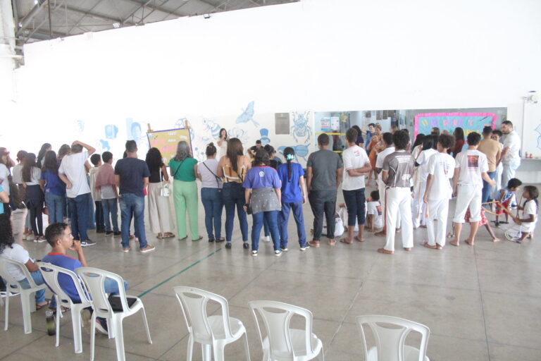 Além da exposição das pinturas e artesanato, também foi realizada uma roda de capoeira, desenho coletivo, brincadeiras e danças.