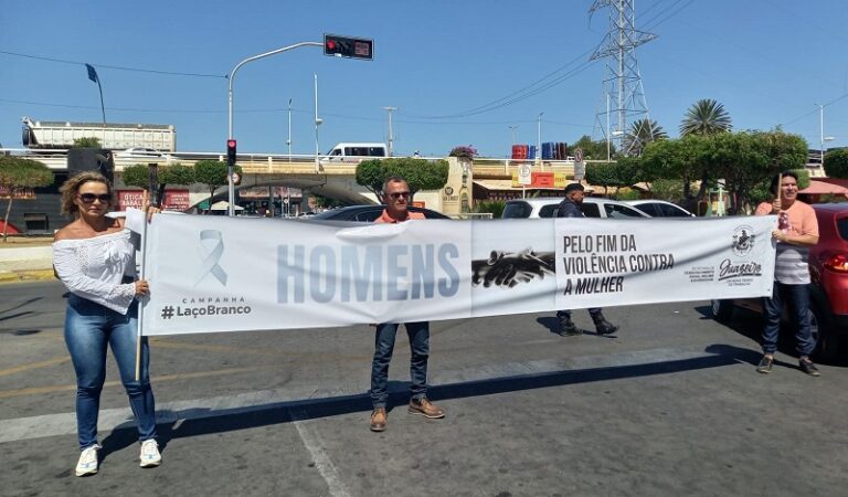 A Prefeitura de Juazeiro, através da Secretaria de Desenvolvimento Social, Mulher e Diversidade (Sedes), realizou na manhã dessa terça-feira (12) uma ação de conscientização aos homens pelo fim da violência contra mulheres. A campanha denominada ‘Laço Branco’ foi realizada em formato ‘Pit Stop’ nos semáforos no entorno da Praça Barão do Rio Branco.