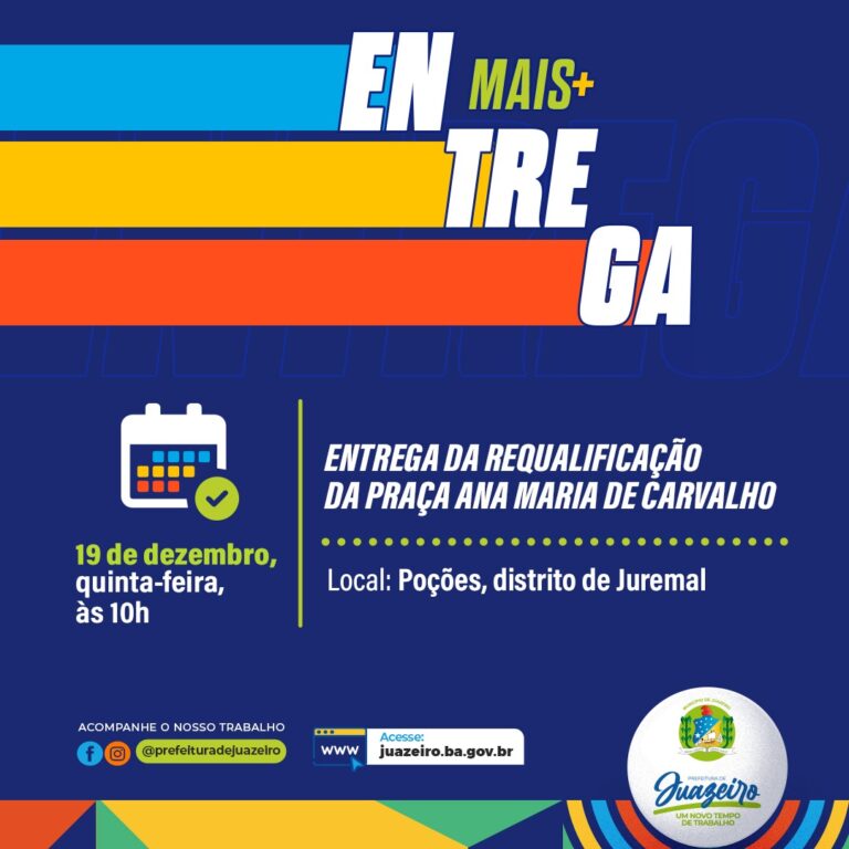 A Prefeitura de Juazeiro realiza nesta quinta-feira (19), às 10h, a entrega de uma nova área de lazer e convivência para os moradores de Poções, no distrito de Juremal. A praça, totalmente revitalizada, faz parte do conjunto de ações que visa qualificar e valorizar os espaços públicos do município, promovendo mais bem-estar e lazer para a população.