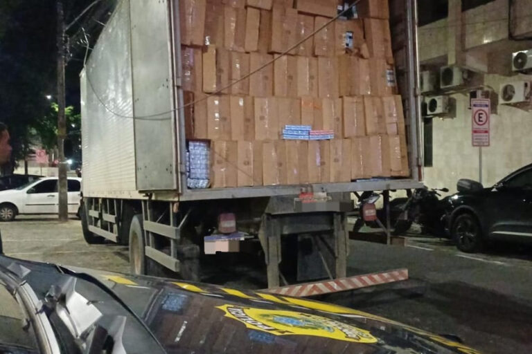 Ao abrir o compartimento de carga do caminhão, foram encontradas 600 caixas de cigarros paraguaios. O produto é proibido pela Agência Nacional de Vigilância Sanitária (Anvisa) de ser comercializado no país.