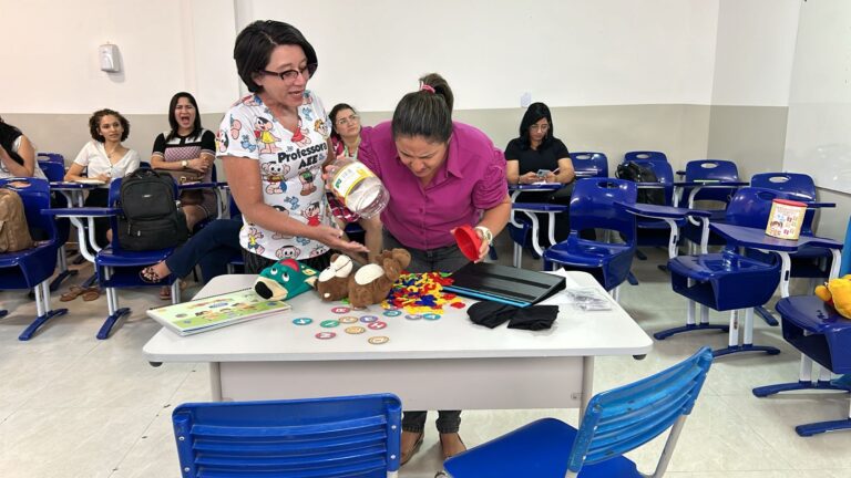 Trabalhando na perspectiva de uma educação inclusiva e que favoreça o pleno desenvolvimento dos estudantes, a Prefeitura de Petrolina, por meio da Secretaria de Educação, Cultura e Esportes, tem investido em diversas ações para tornar o ambiente escolar cada vez mais qualificado. Nesta sexta-feira(05), os professores do Atendimento Educacional Especializado(AEE) participaram de uma formação continuada na Escola do Saber, com o tema “A prática do professor do AEE na Sala de Recursos Multifuncionais”. A ação teve o objetivo de apresentar como funciona de fato essa assistência e como tem gerado grandes resultados na rede de ensino. Foi possível também mensurar o nível de apropriação do conhecimento teórico e prático dos docentes e promover ajustes nessa condução.
