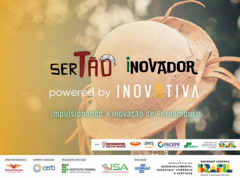 O SerTão Inovador powered by InovAtiva é um programa totalmente gratuito e equity free, que selecionará até 25 projetos inovadores do ecossistema de Pernambuco. A participação é aberta a soluções de todas as áreas de atuação que estejam nas fases de criação, ideação ou validação. Esta edição do programa tem a realização do Ministério do Desenvolvimento, Indústria, Comércio e Serviços (MDIC) e o Serviço Brasileiro de Apoio às Micro e Pequenas Empresas (Sebrae) , com as incubadoras ISA e Sertão Maker do IFSertãoPE, suporte à execução da Fundação Centros de Referência em Tecnologias Inovadoras (CERTI) e apoio metodológico da Wadhwani Foundation. Com parceria e apoio da Superintendência do Desenvolvimento do Nordeste (SUDENE) e Ministério da Integração e do Desenvolvimento Regional (MIDR), do CESAR School e da Fundação de Amparo à Ciência e Tecnologia de Pernambuco (FACEPE).