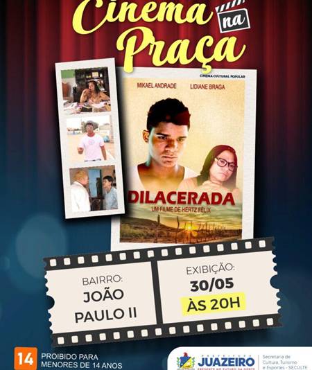 A Secretaria de Cultura, Turismo e Esportes (Seculte) de Juazeiro (BA) realizará nesta sexta-feira (30), às 20h, mais uma edição do Projeto ‘Cinema na Praça’. Desta vez, a ação cultural acontece na Praça da Igreja do Bairro João Paulo II, com a exibição gratuita do filme Dilacerada, que aborda de forma contundente a temática da violência nas salas de aula.