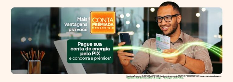 Neoenergia vai sortear 10 prêmios de R$ 500 entre os clientes da concessionária que estiverem adimplentes e pagarem a fatura de energia utilizando o PIX, a partir desta segunda-feira (02). Os interessados em concorrer à Promoção Conta Premiada também devem se inscrever no site oficial da campanha e realizar a atualização dos seus dados cadastrais junto à empresa no próprio endereço eletrônico. Serão três sorteios de 10 prêmios cada um, sendo eles nos dias 25 de novembro, 30 de dezembro e 27 de janeiro. No total, serão R$ 15 mil em descontos na conta de energia elétrica, sendo R$ 500 em créditos na fatura para cada um dos 30 sorteados.
