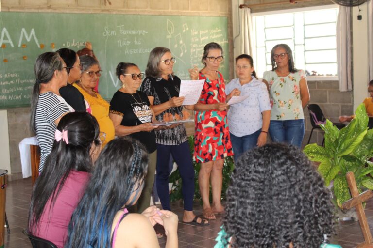 A psicóloga ressaltou também que é fundamental pensarmos o cuidado de forma coletiva, o que requer “organização, pois sem isso não se cuida de si, nem do outro, nem da natureza”. Como forma de representar o compromisso com o autocuidado, as participantes da Assembleia, em sua maioria mulheres de comunidades tradicionais de fundo de pasto, fizeram pequenas esculturas de argila.