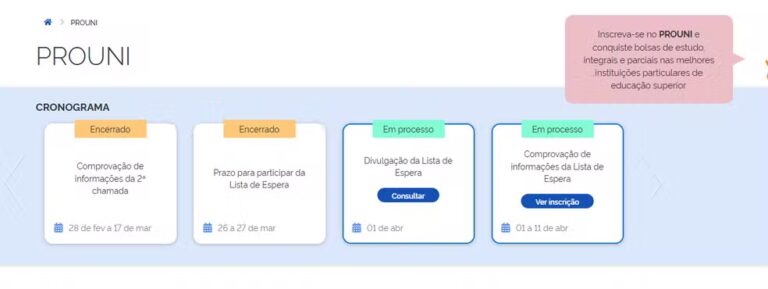 O resultado da lista de espera do Programa Universidade Para Todos (Prouni) do primeiro semestre de 2025 foi divulgado nesta terça-feira (1º). O candidato pode fazer a consulta no portal Acesso Único, utilizando o login gov.br, com CPF e senha.