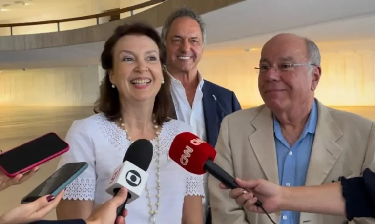 O ministro de Relações Exteriores, Mauro Vieira, avaliou, em coletiva de imprensa neste domingo (26), como “produtiva” a reunião com a deputada argentina eleita Diana Mondino, chanceler designada pelo presidente eleito Javier Milei. Vieira destacou que, a despeito de possíveis falas críticas ao Mercosul, o que vale são as manifestações formais e que há desejo dos dois países em fazer o bloco avançar.