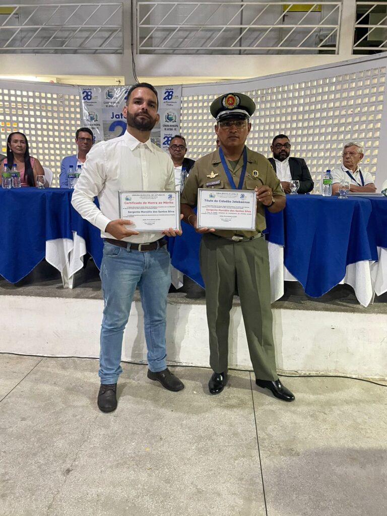 Sargento Marcelio dos Santos Silva da 4° CIPM Petrolândia do 2° Pelotão recebe Medalha de Honra ao Mérito municipal, bem como foi agraciado com Moção de Aplausos, concedida pela Câmara de Vereadores de Jatobá-PE, pelos relevantes trabalhos prestados à sociedade.