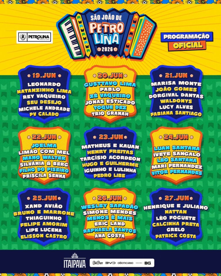 Com um calendário que se consolida como uma grande temporada cultural, o ciclo junino reúne também eventos tradicionais como o Concurso de Quadrilhas, o Festival de Violeiros, o Concerto Junino, a Festa de Santo Antônio e a Missa do Vaqueiro. A agenda soma mais de 100 atrações nacionais e regionais e começa já na próxima semana, com a ExpoRajada, seguindo até o mês de julho.