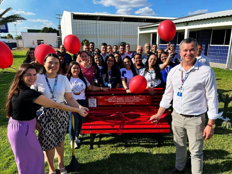 O banco vermelho, símbolo de alerta permanente sobre a importância do combate à violência contra a mulher, foi inaugurado na tarde desta segunda-feira (25), nos jardins do SENAI Petrolina.
