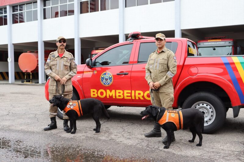 Governo do Estado envia cães para reforçar o trabalho do CBMPE no RS