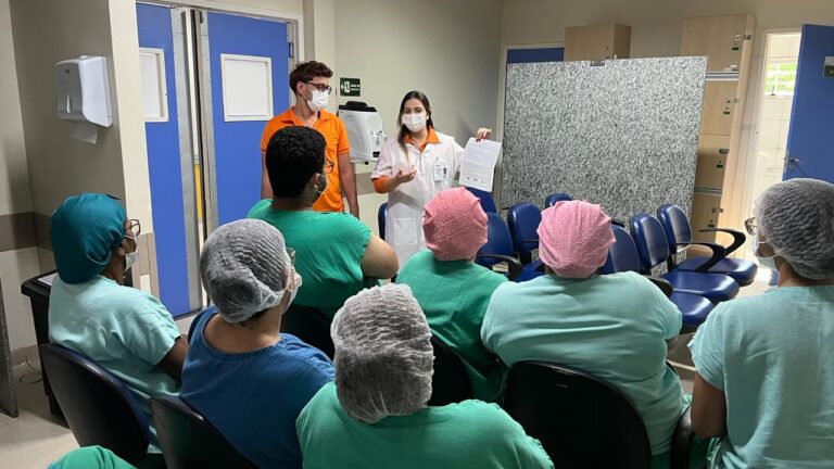De forma prática, nesta quinta-feira (04), a Comissão de Controle de Infecção Hospitalar (CCIH), em parceria com o setor de Epidemiologia e Educação Permanente, promoveu uma ação de sensibilização in loco. A equipe destacou a importância das notificações, desmistificando seu caráter punitivo e enfatizou seu papel na geração de dados para possíveis intervenções e estatísticas. Além disso, foram reforçadas as seis metas para a segurança do paciente, que têm sido trabalhadas mês a mês com os profissionais da casa.
