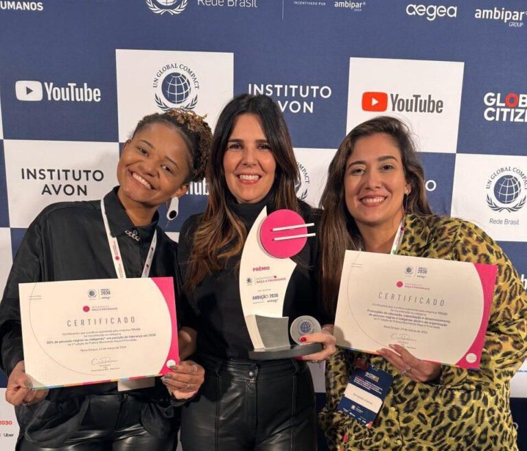 Duas iniciativas da Yduqs em prol da equidade racial foram reconhecidas, na última quinta-feira, 14/03, com prêmios de melhores práticas pelo Pacto Global da ONU no Brasil. O Programa de Trainee da Yduqs, exclusivo para pessoas pretas e pardas, e a constante evolução das metas da companhia para acelerar a representatividade de pessoas negras em posições de liderança destacaram-se entre as melhores práticas do Movimento “Raça é prioridade”. A Yduqs conquistou duas das quatro categorias da premiação, evidenciando seu compromisso no combate ao racismo. O evento de premiação ocorreu em Nova Iorque, na sede da ONU, durante a 68ª CSW (Comissão Sobre a Situação da Mulher), uma instância destinada a discutir os direitos das mulheres e meninas em todo o mundo. Representando a Yduqs estavam Cláudia Romano, presidente do Instituto Yduqs e vice-presidente do grupo educacional Yduqs; Joice Portella, gerente de ESG da Yduqs; e Fernanda Vianna, gerente de Desenvolvimento Organizacional e Diversidade do grupo.